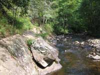 Soon our journey takes us to the first bridge crossing. After walking this far you should be able to appreciate the effort of the people who built these well constructed bridges. We take a minute to snap a photo looking back downstream.